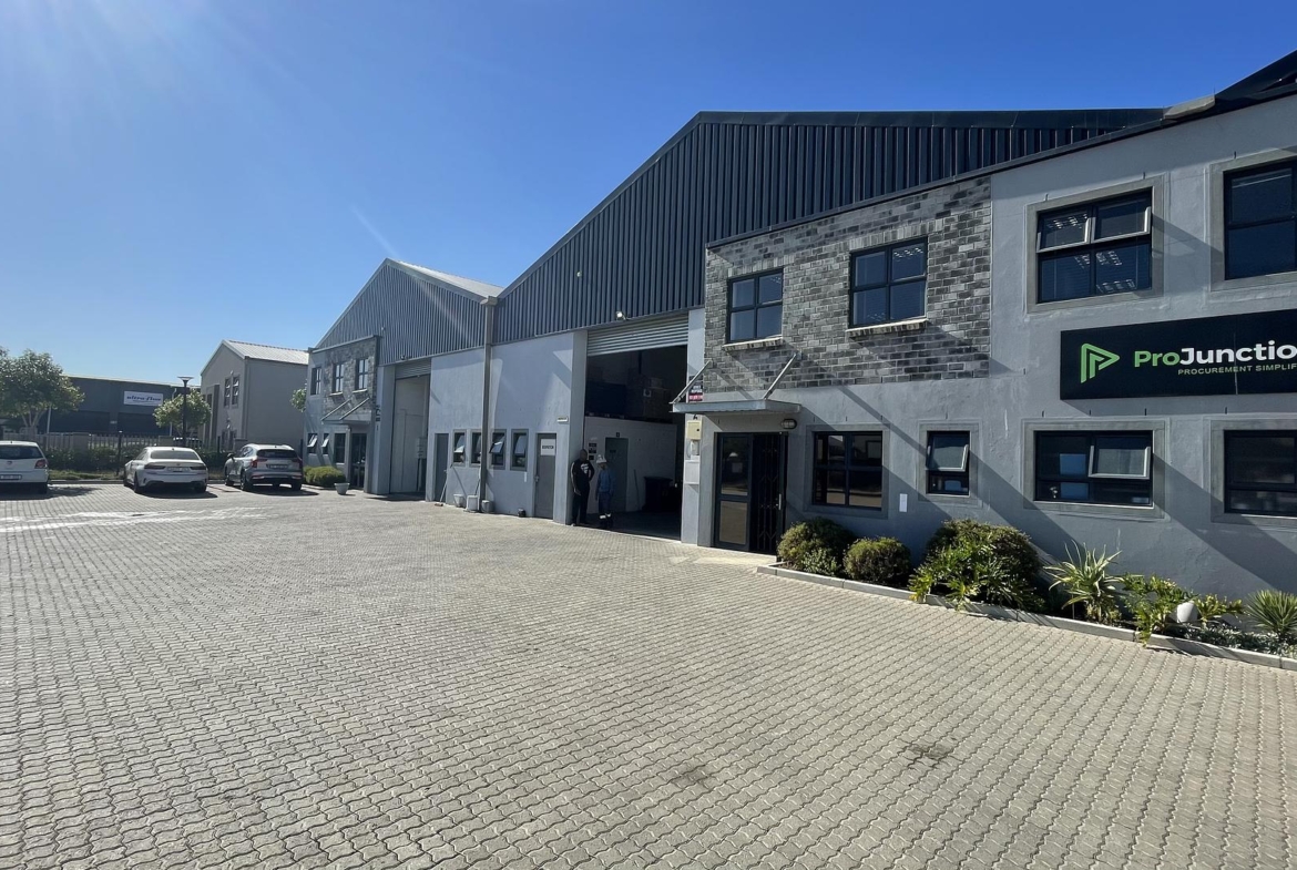 This modern warehouse to let in Rivergate Industrial Park spans 1,221m² and combines a functional warehouse with well-appointed office spaces. Strategically positioned just outside Cape Town along the West Coast Corridor, it’s close to the N7 and R27 highways, ensuring seamless connectivity for industrial property rentals in Cape Town. Whether you’re in logistics or manufacturing, this property meets diverse business needs.